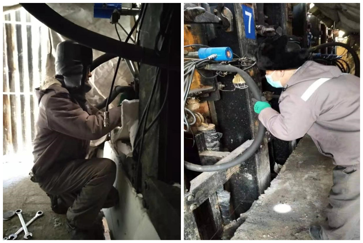 项目部成员观察烘炉情况