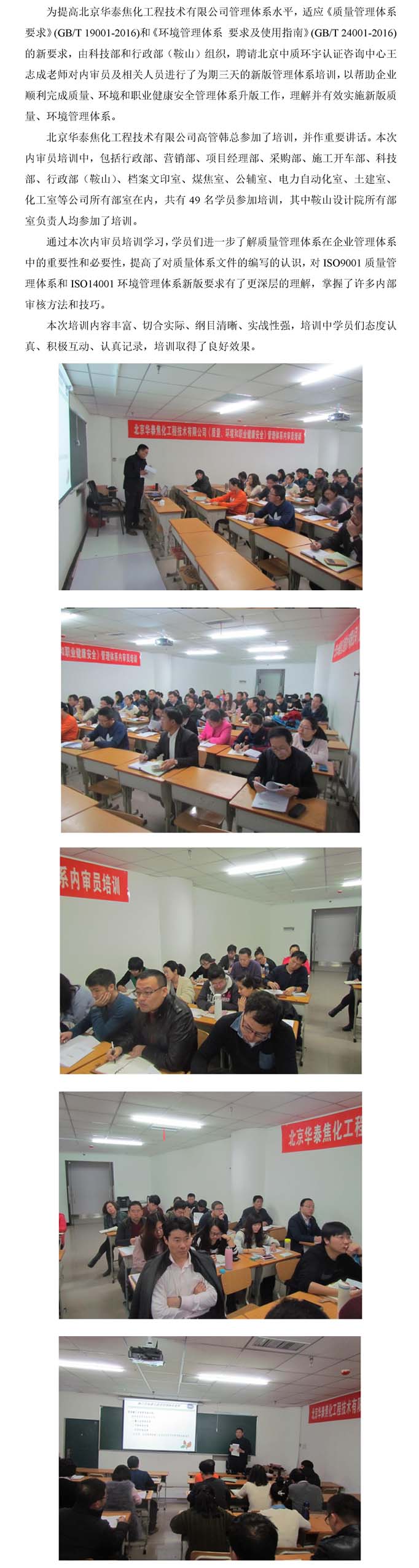 质量、环境和职业健康安全管理体系内审员培训报道