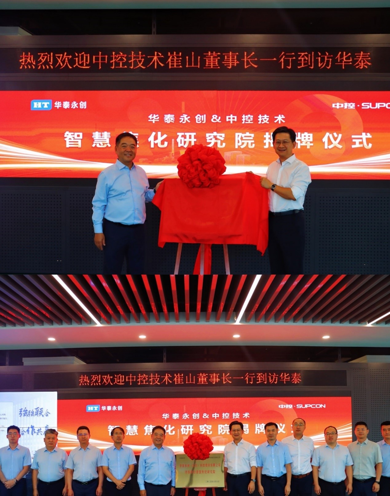 Concluding the discussions, an unveiling ceremony was held to mark the formal launch of this comprehensive collaboration. As the red cloth was lifted, the nameplate for the HT–SUPCON Smart Coking Institute was revealed, signaling a pragmatic, professional, and strategic new phase in the two companies’ collaboration on digital and intelligent solutions for the coking industry.